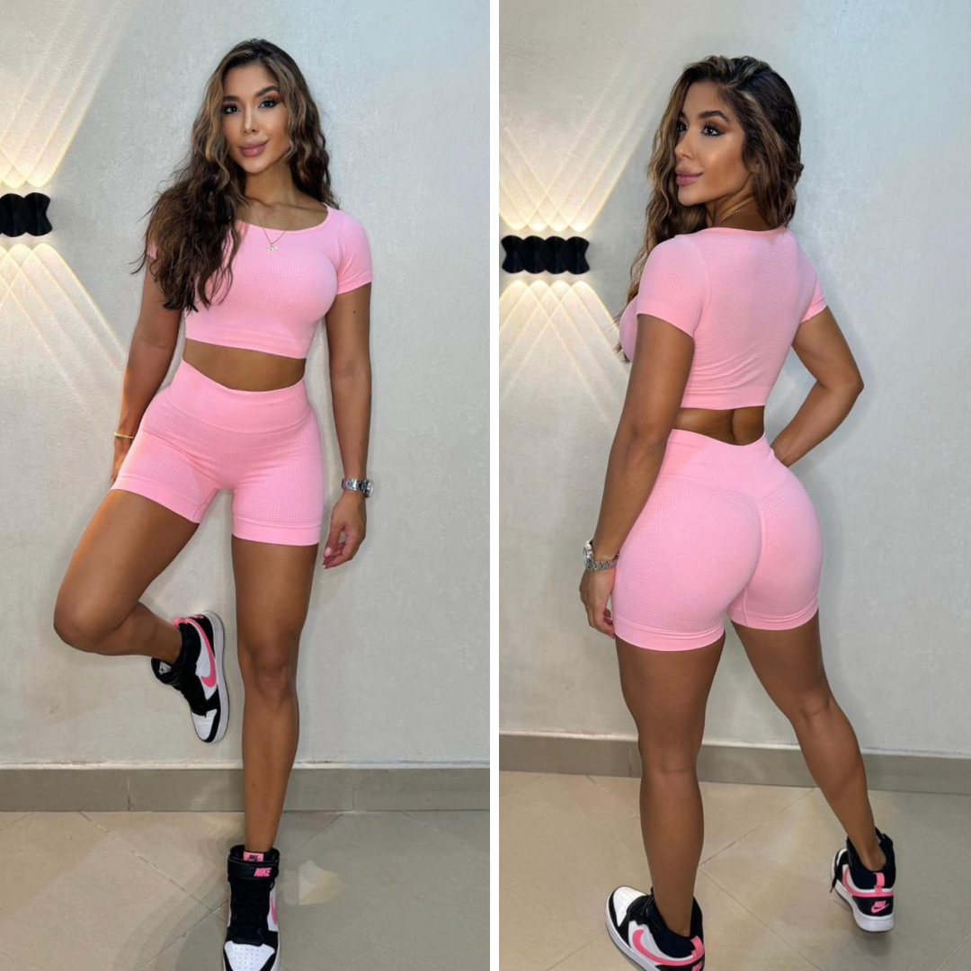 Luce y siéntete increíble con el Conjunto Deportivo Doble Piel Push Up, diseñado para brindarte comodidad, soporte y estilo en todo momento. Su tela de alta calidad con tecnología doble piel se ajusta a tu cuerpo sin marcar ni transparentar, mientras que su efecto fruncido en la parte trasera realza los glúteos para un look más definido.